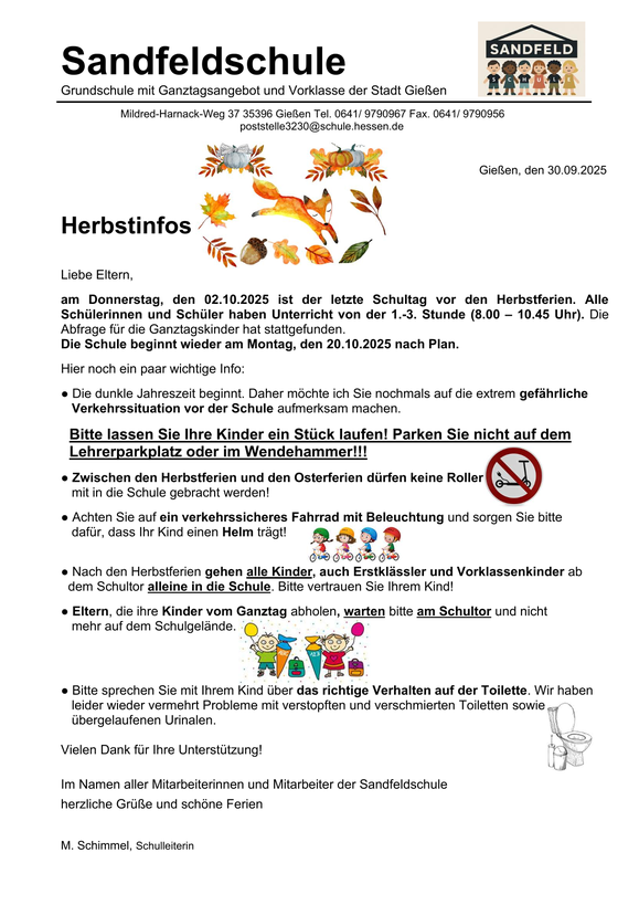 Im Namen aller Mitarbeiterinnen und Mitarbeiter der Sandfeldschule